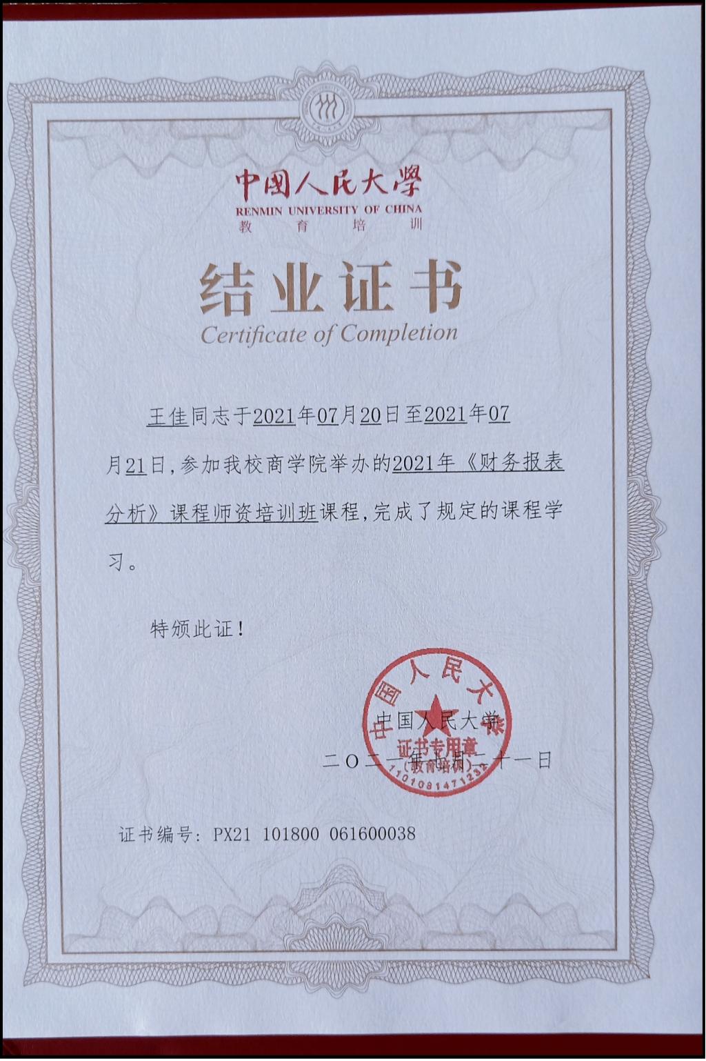 主办、中国人民大学出版社承办的2021年“财务报表分析师资培训班”于近期举办。