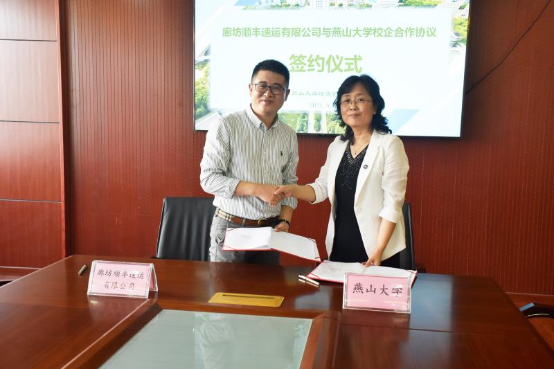 院长李春玲与廊坊顺丰速运有限公司人力资源部负责人辛长晔共同签署并交换了《合作协议》。在双方会谈中,李春玲、就抓好协议落实、提升合作水平,加强产教融合基地建设、课程教材攻坚共享、顶岗实习、企业员工培训、校企人员互聘、成立现代物流研究院等合作内容深入交换了意见。