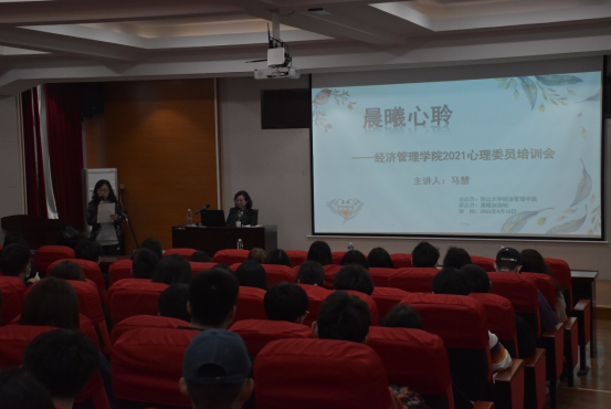 于2021年4月10日下午3时在西五218报告厅,组织开展了2021年心理委员培训会。本次心理委员培训由校心理健康教育服务中心马慧教授主讲,辅导员李宁主持,晨曦加油站承办,培训对象涉及本硕博士班级心理委员。