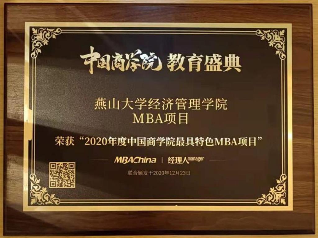 MBA联合会参加本次会议并获得2020年中国MBA“新秀100”奖。