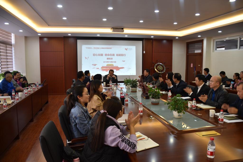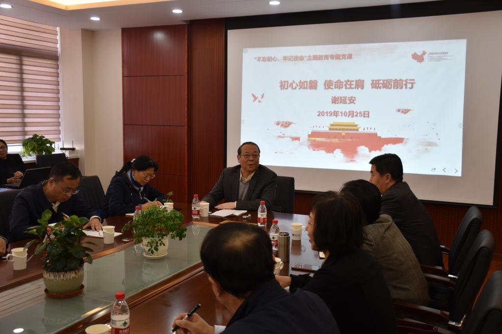 “不忘初心、牢记使命”主题教育实施方案》安排,10月25日14时30分,校党委副书记,校“不忘初心、牢记使命”主题教育领导小组副组长、办公室主任谢延安在经管楼A216会议室以“初心如磐,使命在肩,砥砺前行”为主题,为统战部、工会、安全工作处、亚博体育