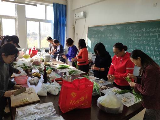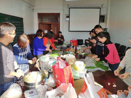 活动之前,分工会精心准备了苹果、梨、糖、葱、姜、糖稀、鱼露等辅料;在刘志坚老师详细讲解腌制辣白菜的过程及其注意事项后,这个“课堂”瞬间“翻转”:“麻烦递给给我一个苹果”、“给我来些糖”、“辣椒面还有没有”、“尝尝我这个味道,太好吃了”。这是一个学习的过程,更是一个彼此交流的过程。近90分钟的活动在老师们的欢声笑语中结束,大家看着自己的作品,脸上洋溢着成功的喜悦与收获的快乐。