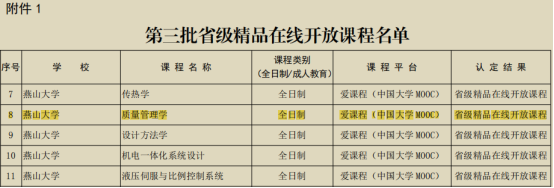 根据《河北省教育厅关于公布第三批省级立项精品在线开放课程验收认定结果的通知》(冀教高函[2022]36号),亚博体育 5门课程验收合格。亚博体育 的《质量管理学》(负责人:赵玉忠)通过验收,认定为省级精品在线开放课程。这是近年来亚博体育 获得的第一个省级精品在线开放课程。