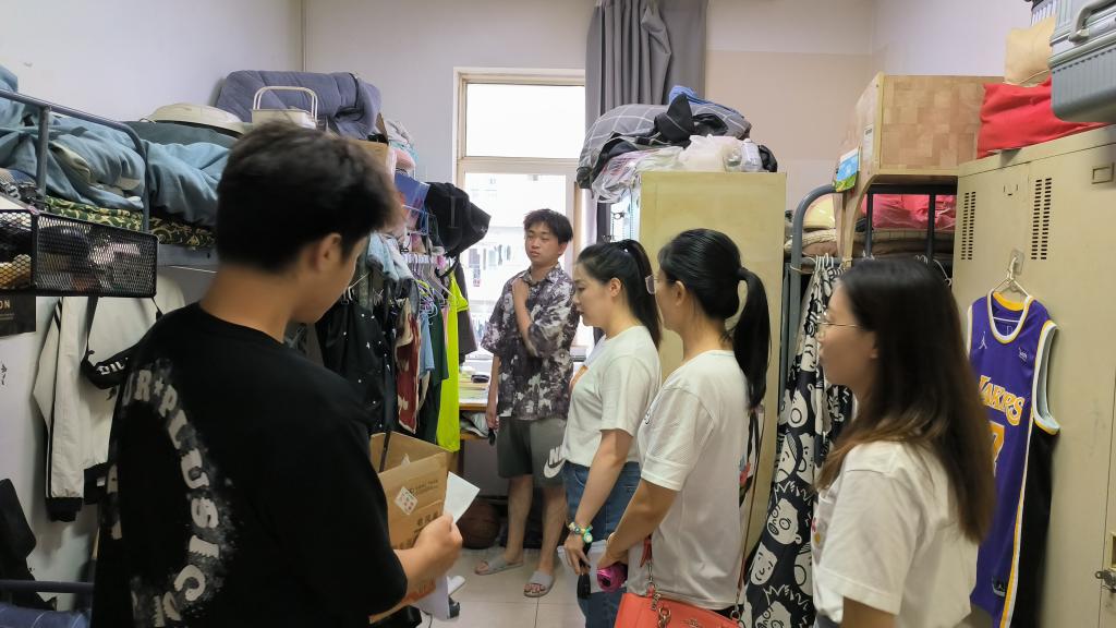 辅导员们逐一走进学生的寝室,认真、全面开展排查工作。对没有学生居住的寝室,确保所有插排断电、门窗关闭,确保没有存放电动车电池、存放容易变质食物等现象;与留校的同学进行深入交谈,增强自我防范的安全意识。排查过程中发现的卫生问题督促学生尽快打扫;对于床铺破损、寝室门口上方燕子筑巢等现象及时反馈给寝室管理员。