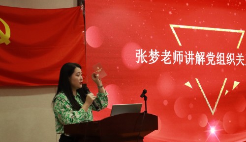 第一党支部书记张梦老师进行“毕业生党员党组织关系转接”的相关工作讲解。张梦老师首先强调了党组织关系接转的重要性,并针对党组织关系转接过程中需要注意的问题进行详细的介绍说明,提醒毕业生党员们要及时、准确、规范地完成党组织关系转接工作。