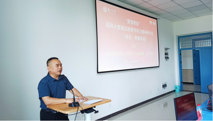 张杰副总裁对各位老师表示诚挚的欢迎,他介绍了新道科技在数字化转型的背景下,发挥自身丰富的产业资源,与多所院校共建产教融合、校企合作的新范式,旨在培养更多复合型创新型的数智化人才。