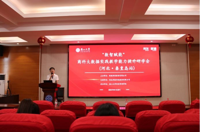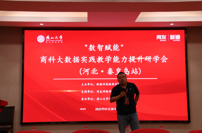 在数智化教学方面的探索与实践进行了简要介绍,并对新道科技股份有限公司一直以来在经济管理类高等教育方面所做的创新实践和教育培训工作表示认可。