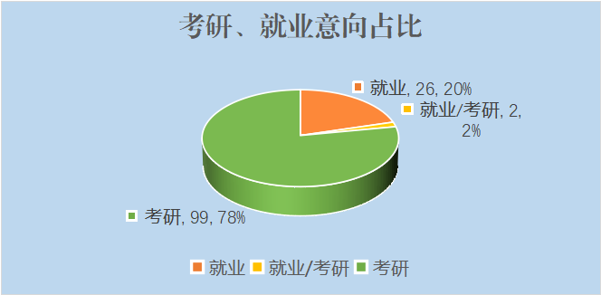 经过调研汇总,目前有78%的学生明确选择考研,20%的学生明确选择就业,同时有2%的学生做两手准备。据此,导师们采用一对一的方式,帮助考研学生分析其选择亚博体育