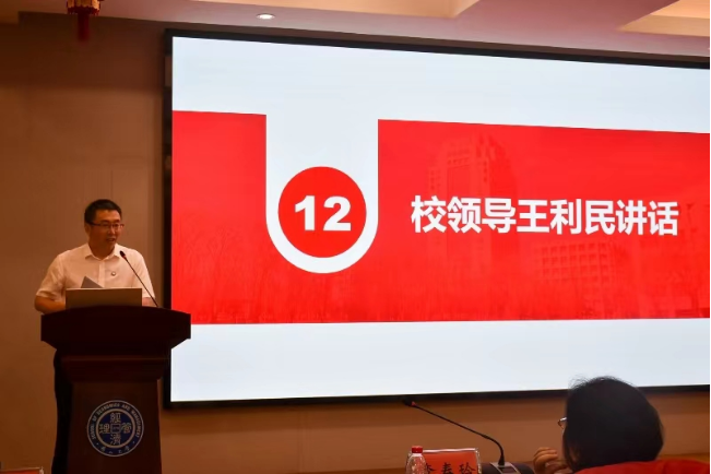 党委常委、副校长王利民教授讲话,他对2023级新生表示了热烈欢迎和衷心祝贺,详细介绍了亚博体育