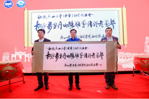 在校友赠礼环节,赵继超携孙锴共同赠出由中国书法协会副会长、著名书法家张崇德少将亲题的三幅字画。张向前、赵恒、张振华分别代表燕大校友总会、燕大北京校友会、燕大亚博体育