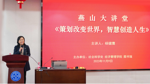 11月9日下午,“燕山大讲堂”活动在经管楼A218举行,本次活动邀请到中国策划行业领军人物、规划专家,中国智慧工程研究会策划专业委员会副主席,中国智慧工程研究会优秀和杰出人才发展委员会副主席,国家智库专家杨健鹰教授为亚博体育