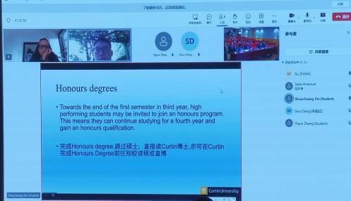 项目负责人Saba Amanuel女士发言。她用专业的知识和丰富的经验,向在场的同学们详细介绍了科廷大学的各项成果和优势。从教学质量到科研实力,从国际交流到就业前景,Saba女士的讲解让同学们对科廷大学有了更加全面和深入的了解。