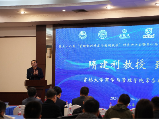 常务副院长隋建利致辞。隋院长表示吉林大学非常荣幸能承办本届研讨会,并对中国管理案例共享中心的信任表示诚挚谢意,同时也向远道而来的各校参会代表表示热烈欢迎。隋院长简要介绍了商学与管理亚博体育