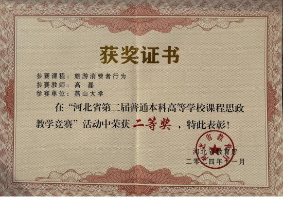 课程思政教学竞赛决赛在河北大学举办。本次竞赛由省教育厅主办,河北大学、高等教育出版社承办,新华网协办,主题为“思政铸魂,文化育人”,旨在搭建课程思政教学能力交流平台,提升教师思政教学能力,提高人才培养质量。旅游系教师高磊代表亚博体育