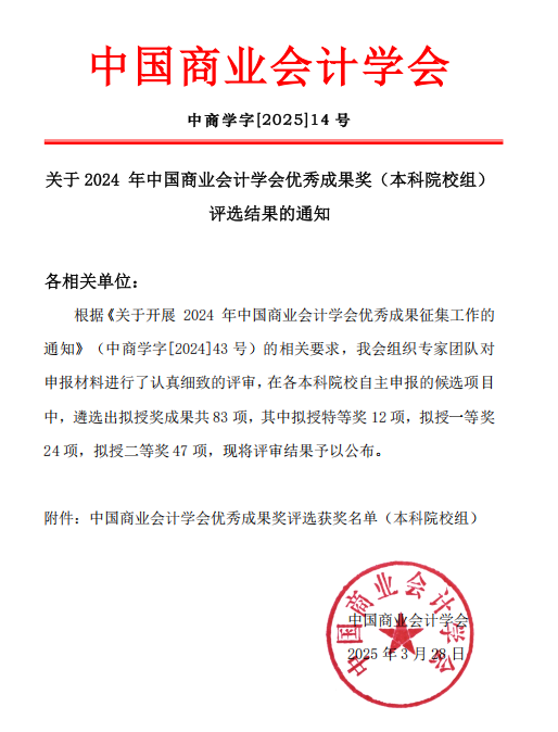 近日,中国商业会计学会公布2024年优秀成果奖评选结果,亚博体育