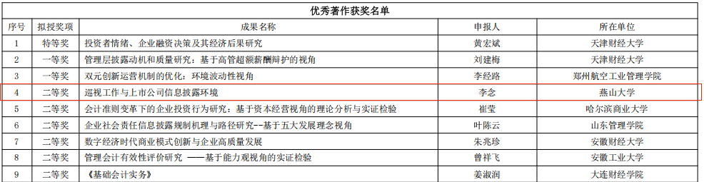 会计系教师王玉坤团队荣获优秀教学成果一等奖、李念荣获优秀著作二等奖。以上荣誉不仅是对获奖教师个人(团队)专业能力和辛勤付出的高度认可,也是会计系在教学与科研方面取得的又一重要突破。