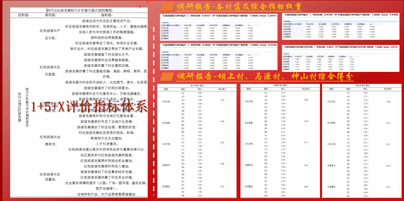 团队在井冈山开展为期9天的党史学习教育、红色实践、课题研讨等主题实践活动,在实践中“苦心志、劳筋骨”,保持“越是艰险越向前”的进取意识,涵养“舍我其谁”的责任担当,努力做起而行之的行动者、攻坚克难的奋斗者。期间成员广泛走访,深入调查实践,在指导老师李宁的带领下,紧紧围绕《“井冈红”引领“村村富”——以“红旅+”新业态助推乡村振兴“井冈山模式”的路径研究》这一课题,运用“1+5+X评价指标体系”,先后前往大仓村、神山村、马源村、坝上村、大井村五个村落开展实地调研,进行实地访谈,发放调查问卷,研究当地红旅发展情况。团队成员创造性设计井冈山旅游导览手册,深入乡村与村民制作非遗漆扇与竹编、与村民孩子共绘一幅画、前往农产品种植基地与特产直营店开展助农直播10余场,探索井冈山“红旅+电商”助农新模式。此外团队成员制作大型原创宣传视频《光亮》《有我》,荣登《人民日报》并广泛转载。