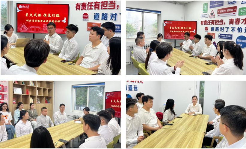 于5月20日—5月27日成功举办“星火成炬,模范引路”优秀毕业生感恩传承系列分享会。活动分设“国家奖学金获得者专场”“河北省优秀毕业生专场”和“就业先锋专场”三场主题分享,邀请20多位研三年级优秀毕业生代表,通过经验分享、互动交流等形式,传递成长智慧,践行感恩教育,助力学弟学妹规划学职发展。