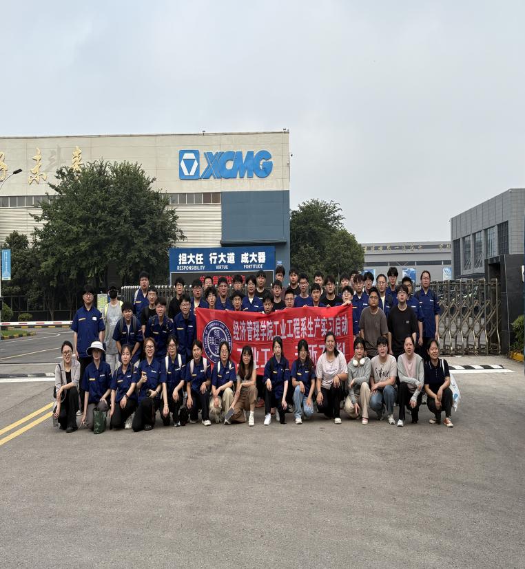 发展历程及工业工程专业的特色优势,表示实践教学是提升学生核心竞争力的关键环节,徐工挖机作为全球工程机械领军企业,其现代化生产线、精益管理体系和智能化物流实践将为工业工程专业提供不可多得的优质教学资源。未来校企双方将通过系统设计认知实习、生产实习、毕业设计等实践环节,推动课程内容与行业标准、教学过程与生产流程的深度对接,切实提升学生解决复杂工程问题的能力。张松松介绍了企业的发展历程和智能化战略布局,强调当前正值企业高质量发展的关键阶段,急需既懂理论又具实操能力的复合型人才,期待通过合作精准对接人才需求,为学生提供真实工程实践平台,同时为企业创新发展注入新动能。王艳亮对徐工挖机提供的实践平台及企业导师的指导表示感谢,要求学生们珍惜实践机会,夯实专业基础,提升实践能力,努力成长为适应新时代产业需求的高素质工程人才。