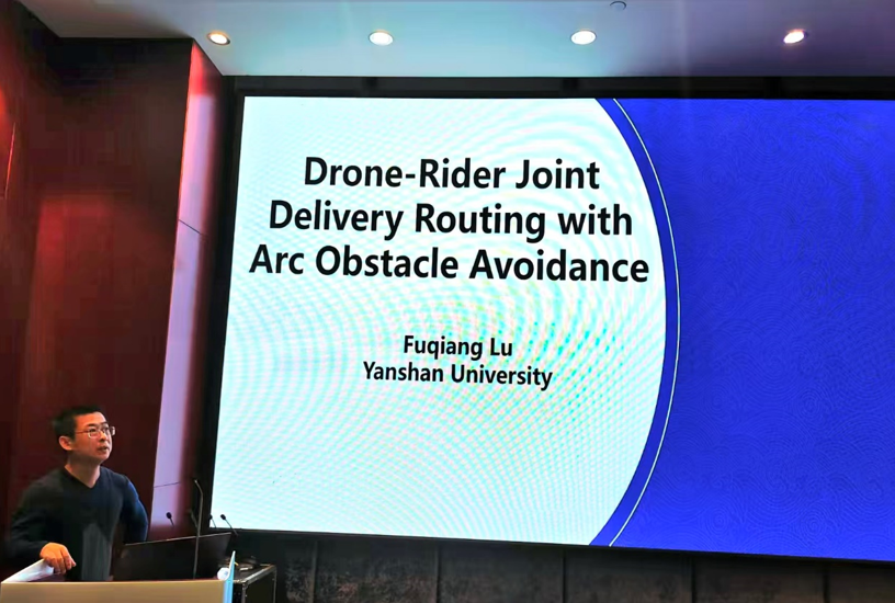 在分论坛环节,卢福强以《Drone-Rider Joint Delivery Routing with Arc Obstacle Avoidance》为题作报告,毕华玲分享《Geospatial patterns and risk analysis of maritime accidents using GIS and association rules mining》的研究成果。