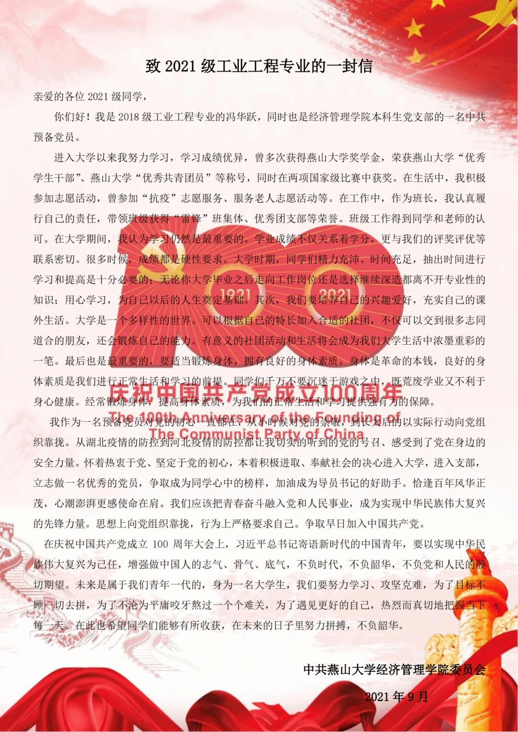 党委制作“一徽一章一信”的红色礼包,在每年的毕业季和迎新季,为毕业生和新生党员分别送上红色祝福,已累计送出500余封。