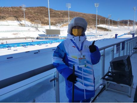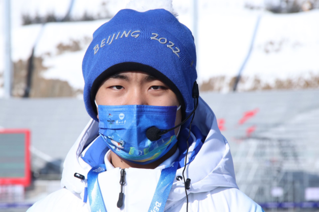 2022年北京冬奥会,对从小爱好雪上运动的郑兆晨来说,无疑有着不可阻挡的热情,从初中开始,他每年都去滑雪,深深喜欢上了在雪上滑行的感觉,也开始关注世界赛场上的中国选手,对冬季奥运会有了一个初步的了解。在他大一听到关于冬奥会志愿者招募的消息时,他毫不犹豫的报了名,经过层层审核,终于在两年后的今天站到了自己的岗位上。