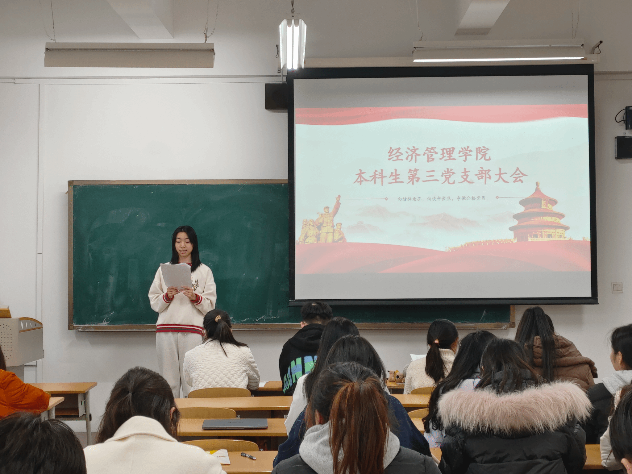 本科生第三党支部于11月21日下午在经管楼C304召开了预备党员转正及接收预备党员支部大会。本次会议由学生党支部书记李佳凝主持,学生党支部全体党员参加了此次会议。
