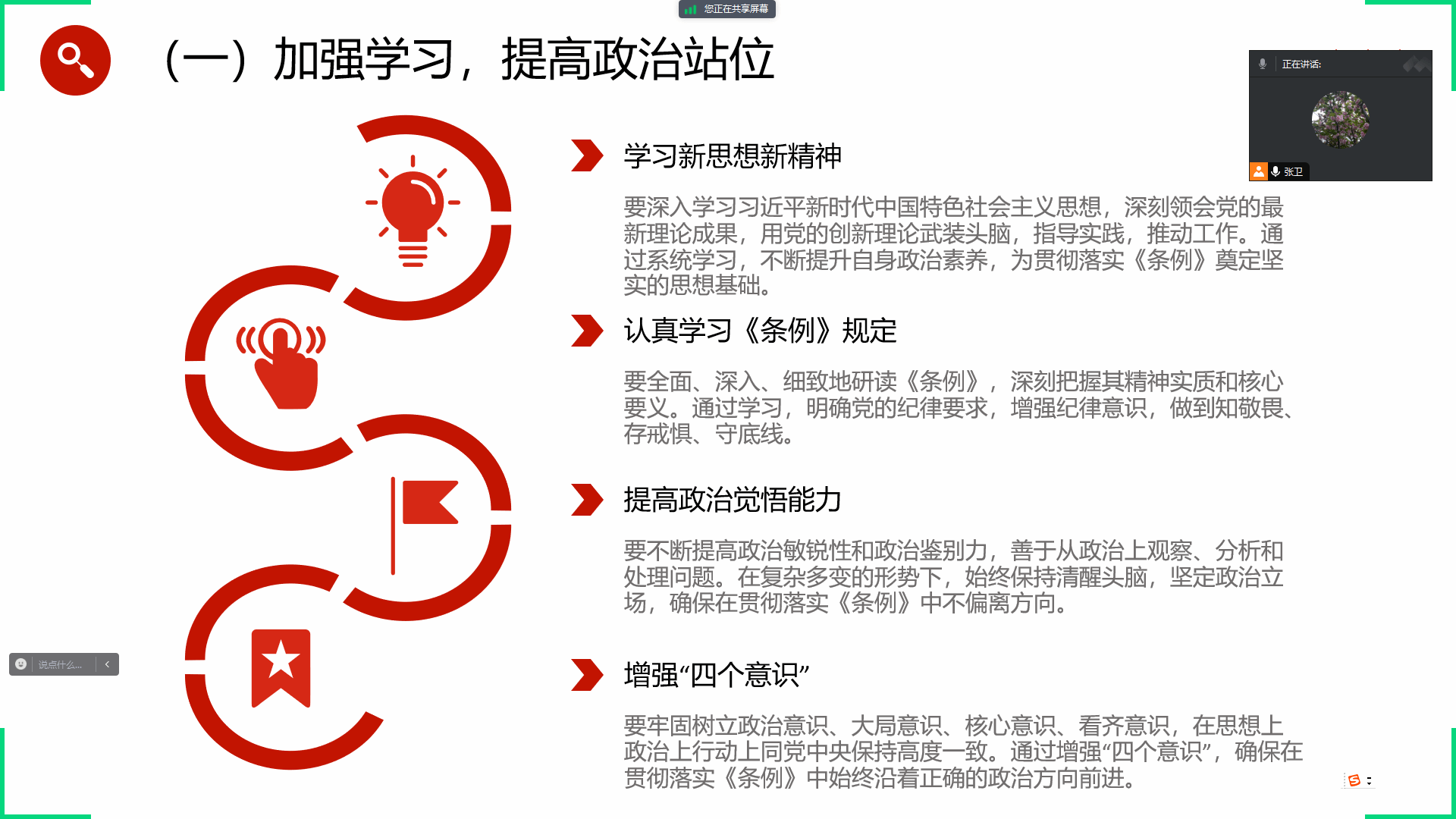 机关党支部于2024年5月12以线上集中学习的形式开展了“学条例,强自律”主题党日活动,党支部书记张卫主持会议。