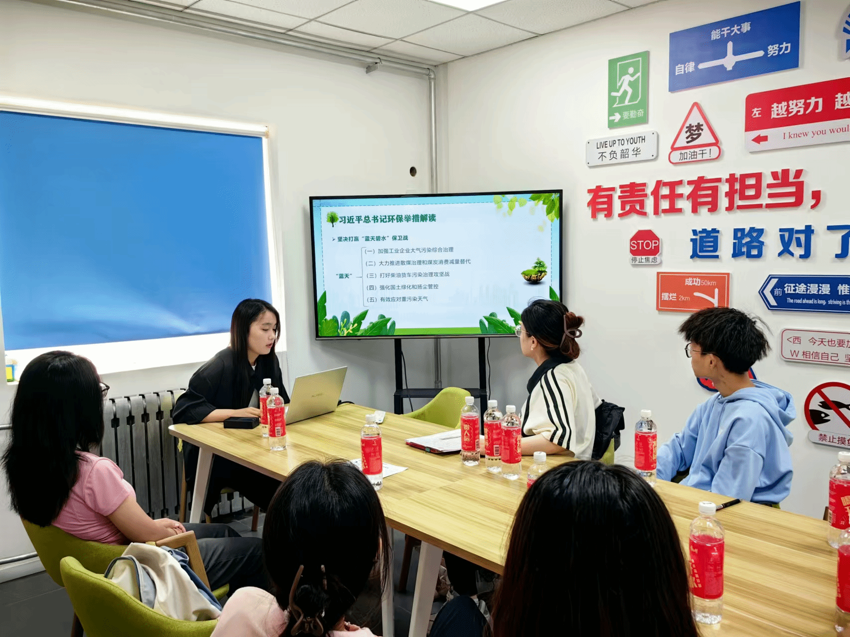 第四党支部全体发展对象就当今热点政治名词和现状开展学习并在燕大西区六组团学生一站式社区进行专题内容学习汇报展示,同学们积极领悟,认真学习党的理论,做党政理论的冲锋员,在党员队伍中发出“青年声”,笃实“青年行”。