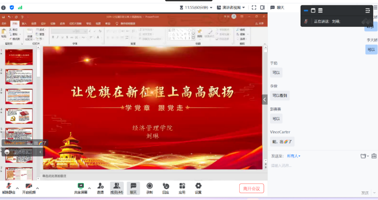正处级专职辅导员、博士研究生党支部书记以线上腾讯会议方式,为博士研究生党支部全体党员、入党积极分子讲授了题为《让党旗在新征程上高高飘扬》的“学党章、跟党走”廉洁奉公树立新风主题教育专题党课。