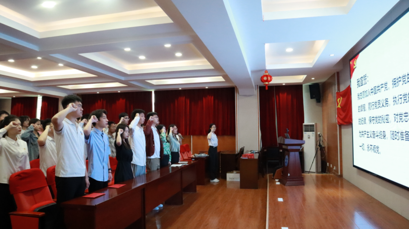 大会第七项:全体党员重温入党誓词,由经济与金融专业党员王萌领誓。全体党员面向党旗右手握拳,庄严宣誓。在激情昂扬的宣誓声中,全体毕业生党员牢记入党初心,坚定理想信念,决心用实际行动践行对党的誓言。