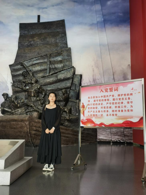 其中支部成员在参观江苏渡江战役纪念馆时重温渡江战役历史,倍受感动。纪念馆里所陈列的大量照片、文物无不重现当时发生的情景,走进展馆看见当年战牺牲的真实影像令人痛定思痛。“让我印象最深刻的是几处士兵雕像和雕刻的战船,雕像后面墙壁是模拟长江的大幅画面,激烈的战时,船上布满战士,船被敌人的炮弹炸出熊熊烈火的画面,江水的汹涌澎湃下,无数士兵们的战船十分晃荡,战士们却似乎没有一丝畏惧!”对这些先锋烈士们肃然而起的敬意,促使在烈士纪念碑前默哀肃立、瞻仰纪念碑成了情不自禁的举动。