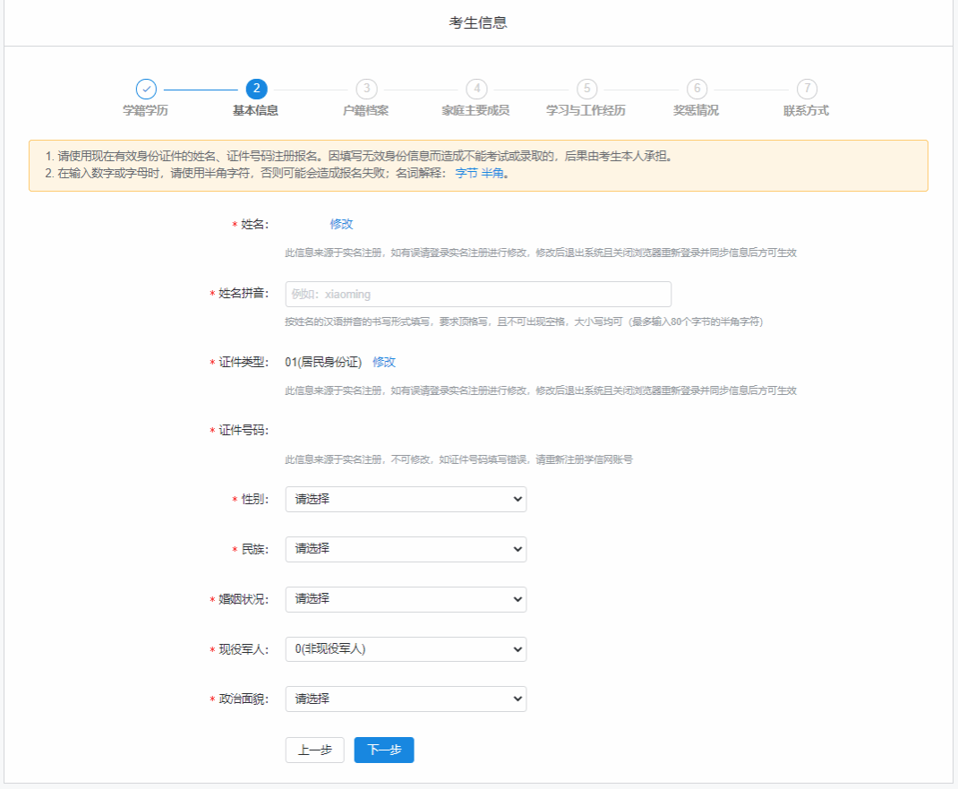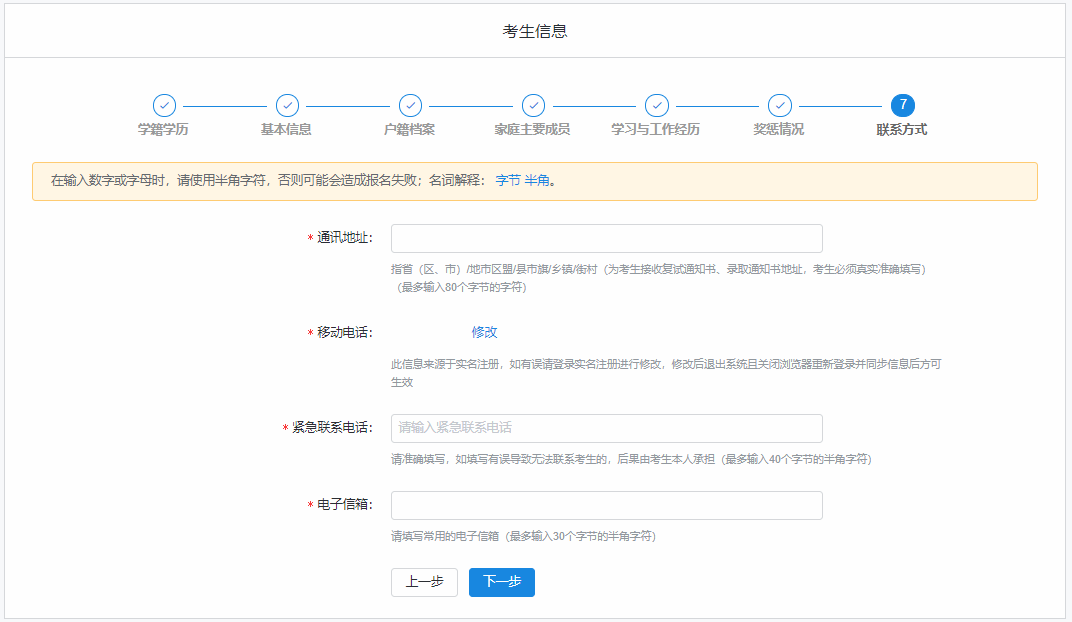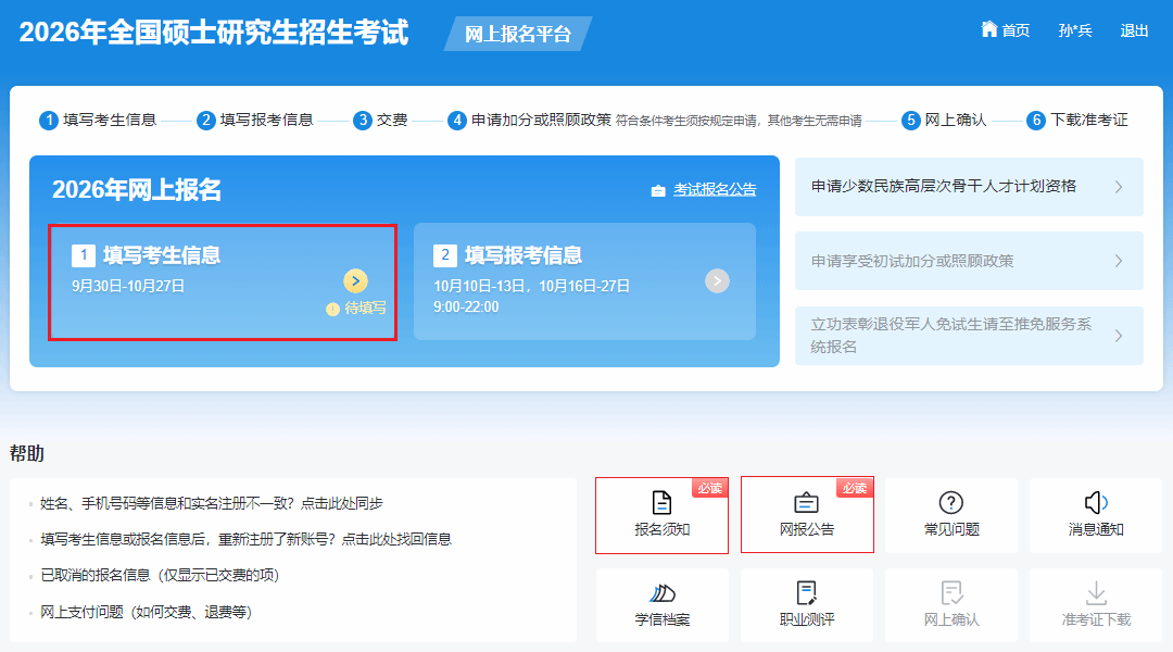 全国硕士研究生招生考试报名包括网上报名和网上确认两个阶段。所有考生均须在规定时间登录“中国研究生招生信息网”(简称“研招网”)(//yz.chsi.com.cn)填报网上报名信息、网上支付报考费,并按照所选报考点要求进行网上确认。只有完成以上步骤,报名流程才完成。