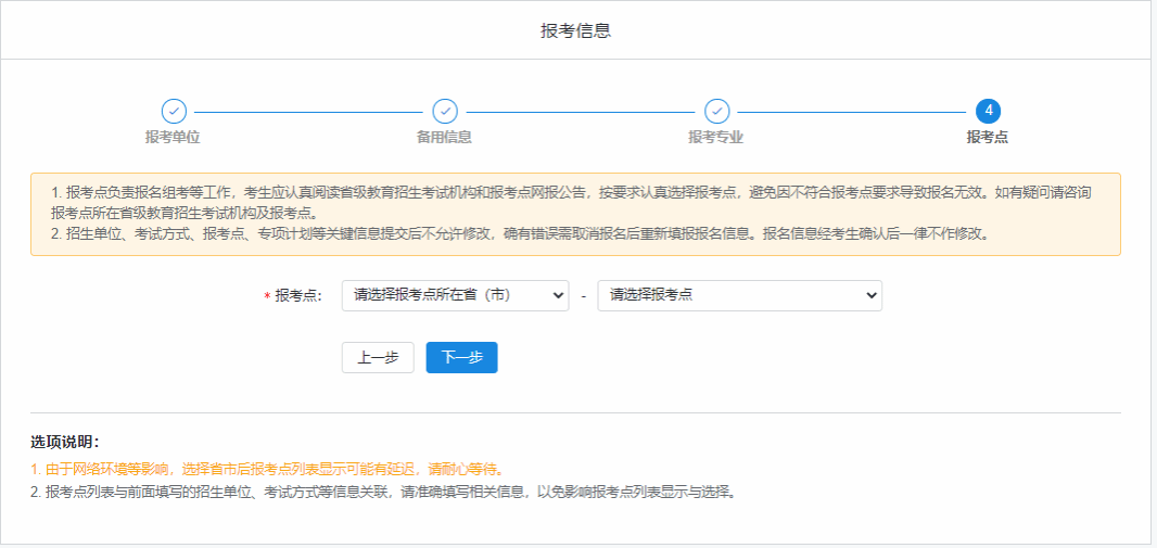 点击网报公告,查看报考院校招生公告,报考点(考试地点)的公告,请务必仔细阅读报考点公告。