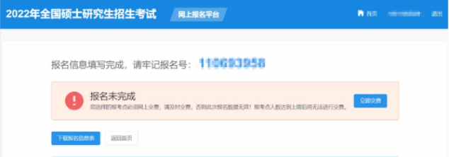 (2)生成报名号,完成网上交费后才算本次报名成功。因报考点对报考人数有限制,建议考生尽快完成支付。报考点人数达到上限后将无法继续支付。报名号是网上确认(现场确认)的重要凭证,请考生务必牢记。