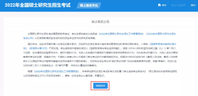 阅读页面上出现的《网上报名公告》后,点击“阅读完毕”,继续阅读《考生诚信考试承诺书》,点击“同意”。