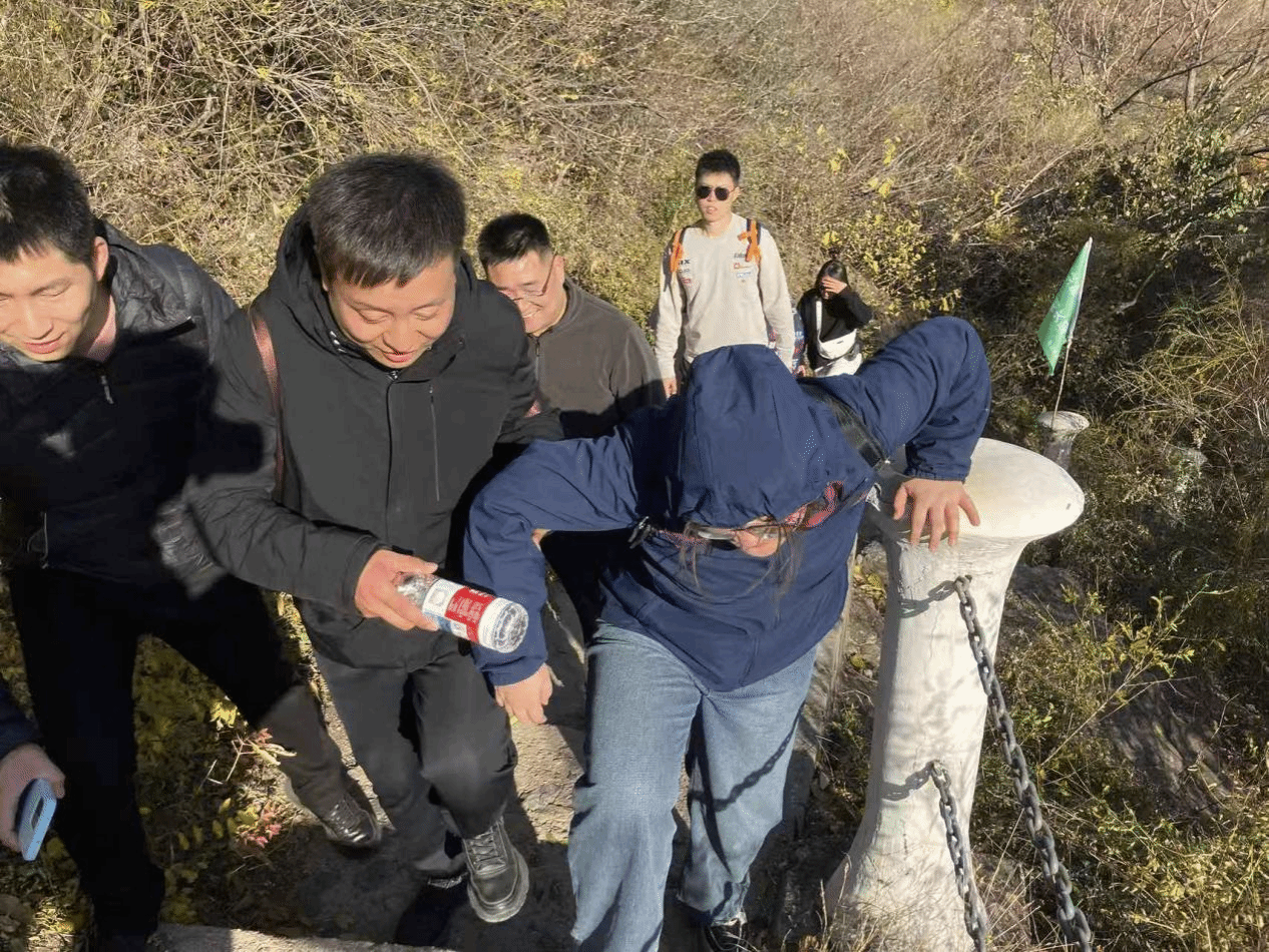 角山长城部分路段坡度近70度,阶梯狭窄且部分区域需手脚并用,这对团队协作提出了更高要求。活动中,同学们自发结成互助小组:体力较好的同学主动帮同伴分担背包,女生队伍相互搀扶通过陡峭段,班委提前准备的矿泉水、创可贴等物资精准分发至有需要的同学手中。“原本以为自己爬不上去,但队友一直喊‘加油’‘慢点走’,甚至拉着我一起迈台阶,这种被‘托举’的感觉特别温暖,2班同学分享道。在“好汉坡”观景台集合时,同学们还分享了攀登过程中的“小插曲”:有的小组用“接力传递”方式帮掉队的同学拿补给,有的小组用“口号鼓劲法”让疲惫的同学重燃动力,欢声笑语中,班级的默契与温情愈发浓厚。